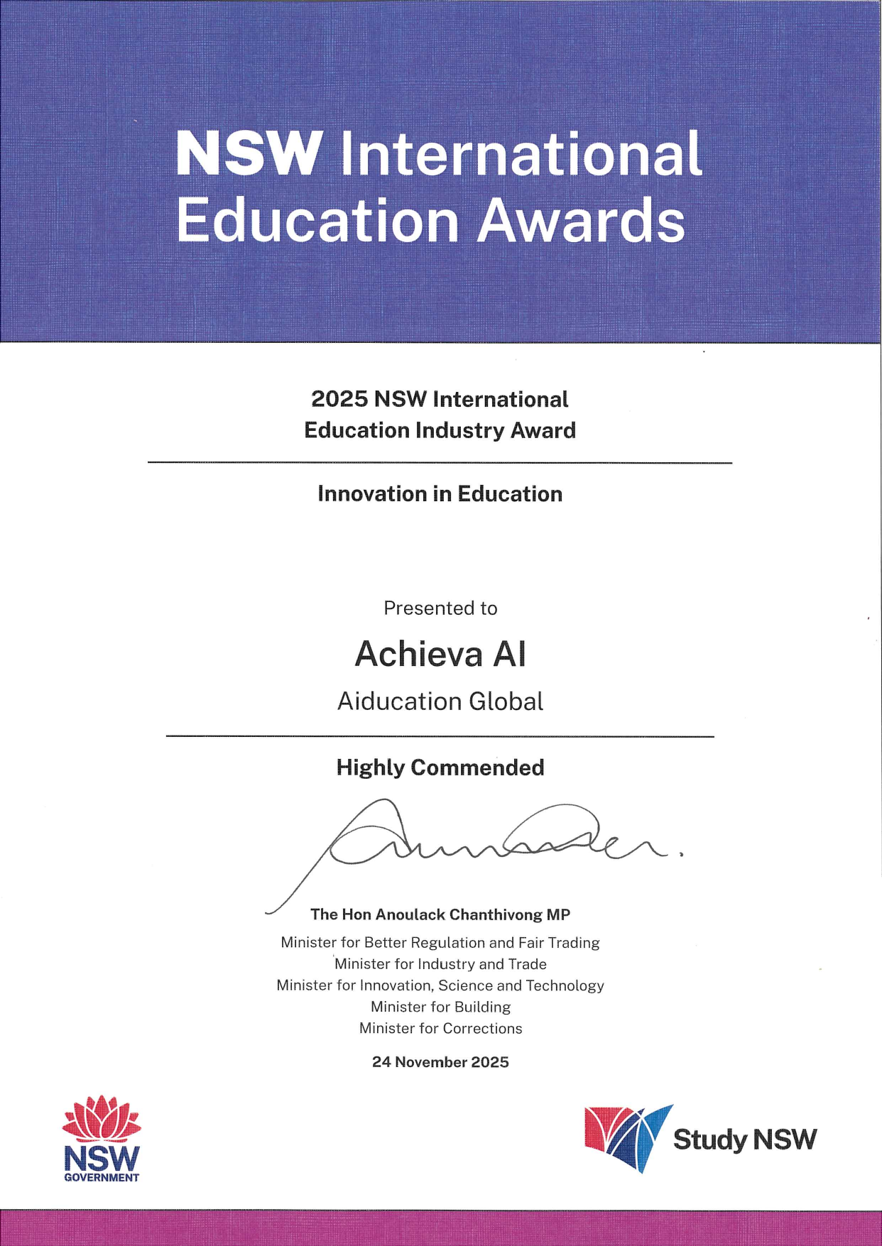Achieva AI has been recognised by the Australian Government for outstanding innovation in education technology, cementing its position as a leading force in the sector.